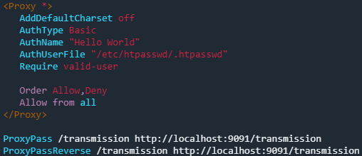 transmission和emby提供了独立的web服务,也就是说他们在主机开了独立的服务端口,这里考虑使用apache代理提供外部访问服务,一方面继承了https,另一方面可以使用apache的授权模块,授权信息通过htpasswd配置:
